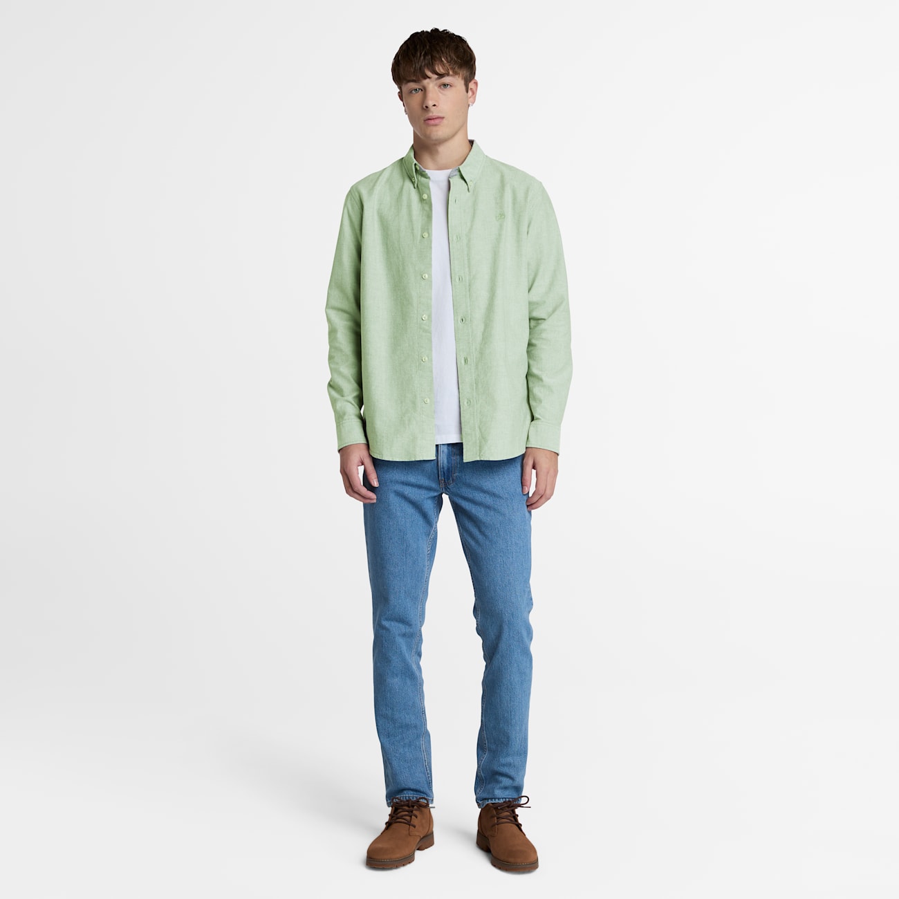 Timberland Camicia Oxford Verde Slim Fit per Uomo